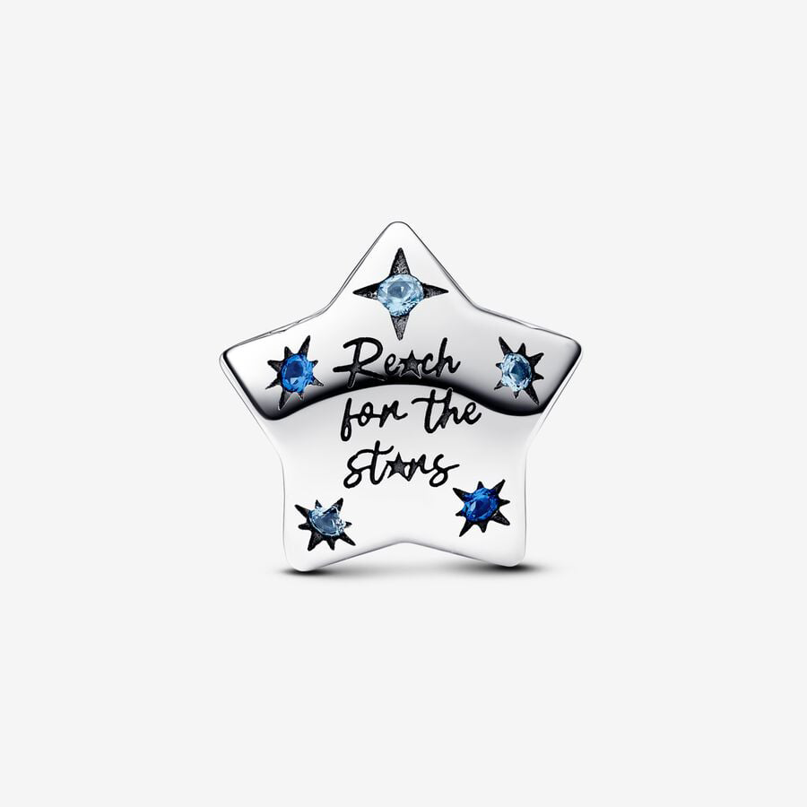 Elevate your style with the Bold Sparkling Star Charm. Crafted from sterling silver, this charm features a softly rounded five-pointed star design. It is adorned with man-made crystals in two beautiful shades of blue, each round stone uniquely shaped within different star outlines. The charming puffy silhouette adds an enchanting touch, creating a sense of light and whimsy to any bracelet or chain. Wear it solo for a bold statement or combine it with your favorite charms for a touch of celestial elegance.