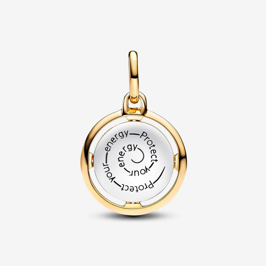 Elevate your energy and productivity with this 14k gold-plated bee medallion. This dual-sided charm showcases an intricately imprinted bee with four triangular points adorned with sparkling stones on one side, while the other side features the engraved message "Protect your energy." A perfect addition to your collection, it symbolizes meaningful work, positivity, and balance in life.
