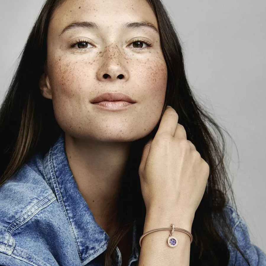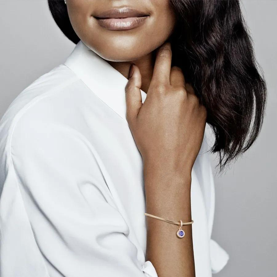 Add a burst of color to your collection with the Sparkling Blue Disc Double Dangle Charm. Hand-finished in 14k rose gold plating, this design features a back disc adorned with beading and dazzling blue stones of different sizes. The logo and crown O monogram grace the reverse side of the disc. The front circle is embellished with clear cubic zirconia for added depth. Pair this charm with other vibrant pieces on your bracelet for a touch of sophistication.