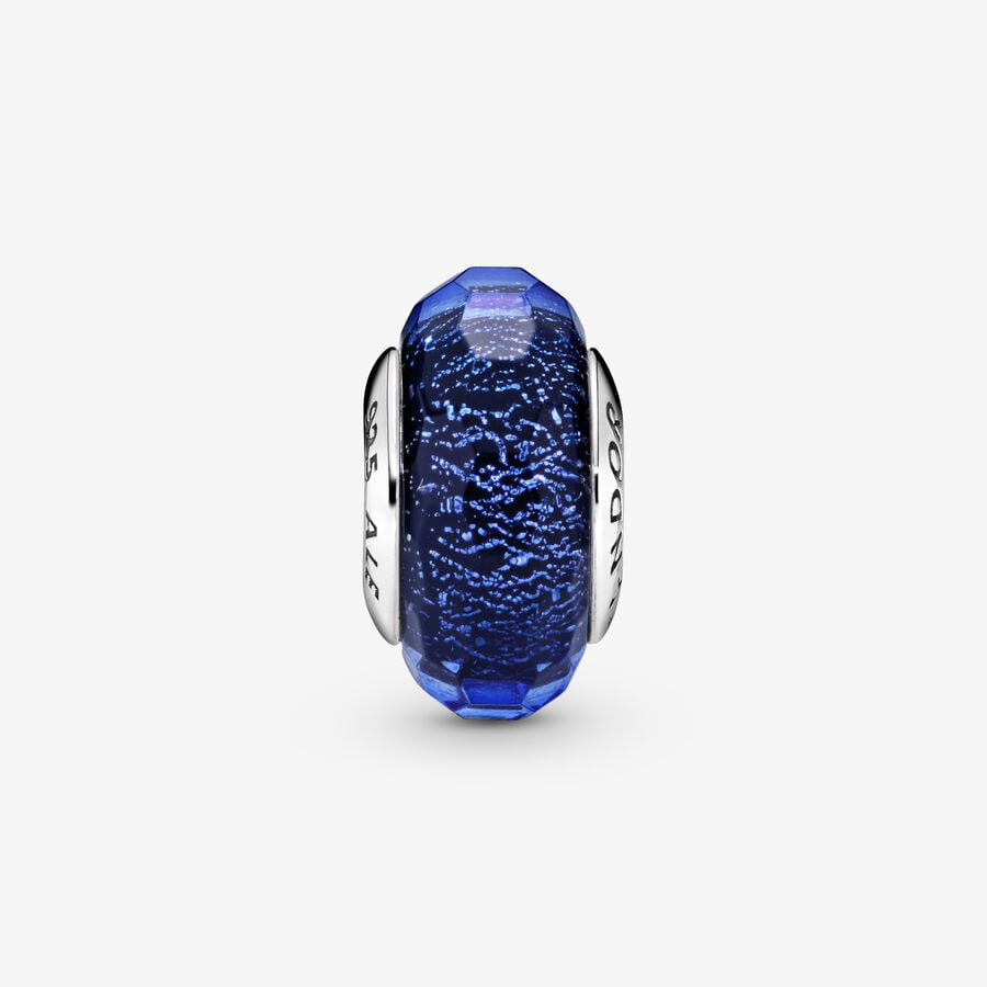 Enhance your charm bracelet with a touch of enchantment from this exquisite iridescent blue glass charm. Crafted in sterling silver, the glass boasts a captivating multi-faceted pattern that glimmers and dazzles in the light. Pair it effortlessly with a variety of other Murano glass and sterling silver charms for a personalized touch.