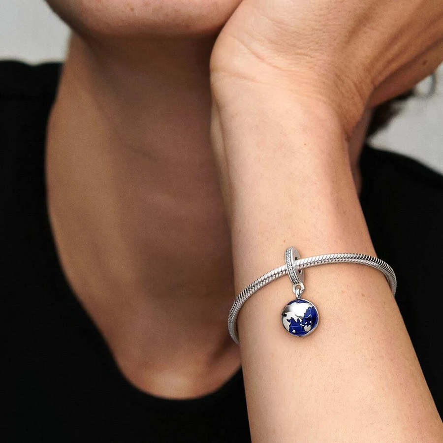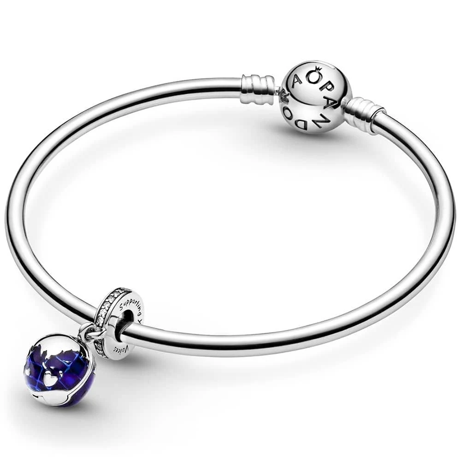 Expertly crafted in sterling silver, intricately adorned with blue enamel depicting the globe, this charm boasts a delightful surprise—a petite sterling silver heart nestled within its confines. Emblazoned with the poignant message "Supporting young voices," this charm embodies solidarity and community, offering tangible encouragement towards the aspirations of children and youth globally.