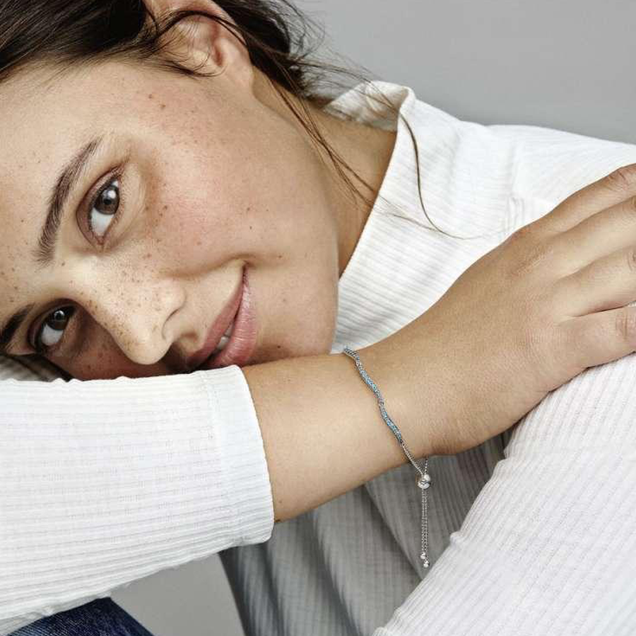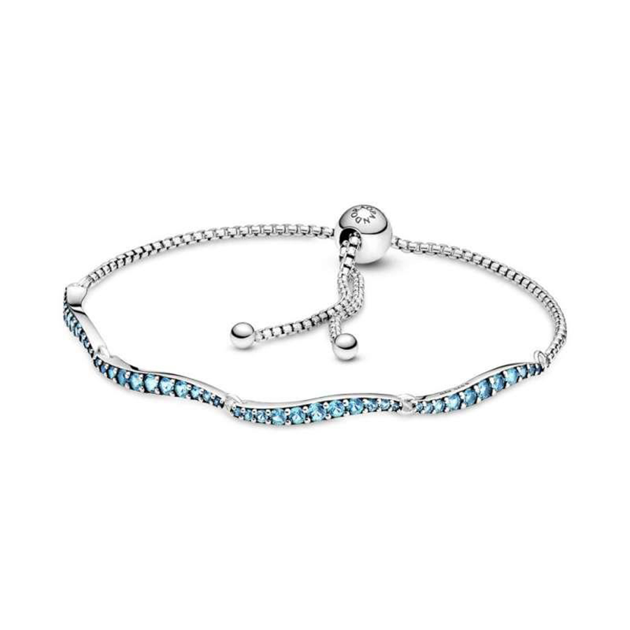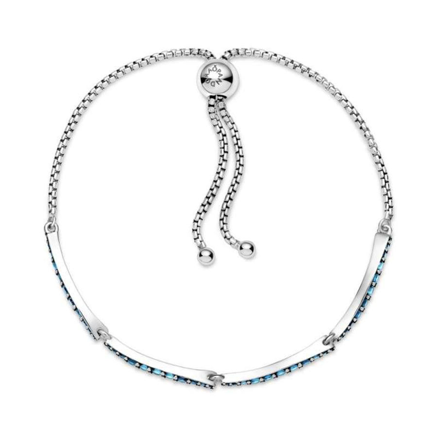 Experience a daily infusion of serenity with the captivating Blue Wavy Free Size Tennis Bracelet. Drawing inspiration from the serene depths of the ocean and the gentle ebb and flow of tides, this exquisite sterling silver bracelet boasts rows of dazzling blue pavé bars arranged in a graceful undulating pattern. Effortlessly customize the fit with its ingenious sliding clasp, ensuring it hugs your wrist just right. Whether worn alone or layered with complementary bracelets and charms, create a style uniquely yours.