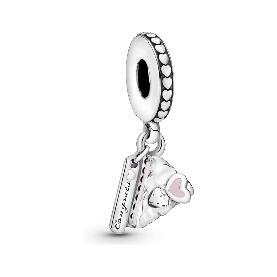 The Cake Slice Silver Dangle Charm is a delightful piece crafted from high-quality sterling silver, designed to add a touch of sweetness to your bracelet. This charming dangle features a beautifully detailed cake slice, complete with intricate frosting and a tiny cherry on top, embodying the joy of indulgence. Its elegant design not only makes it a perfect accessory for dessert lovers but also complements various styles, making it a versatile addition to your collection. This charm easily attaches to your favorite bracelet, allowing you to showcase your unique personality and love for all things sweet.