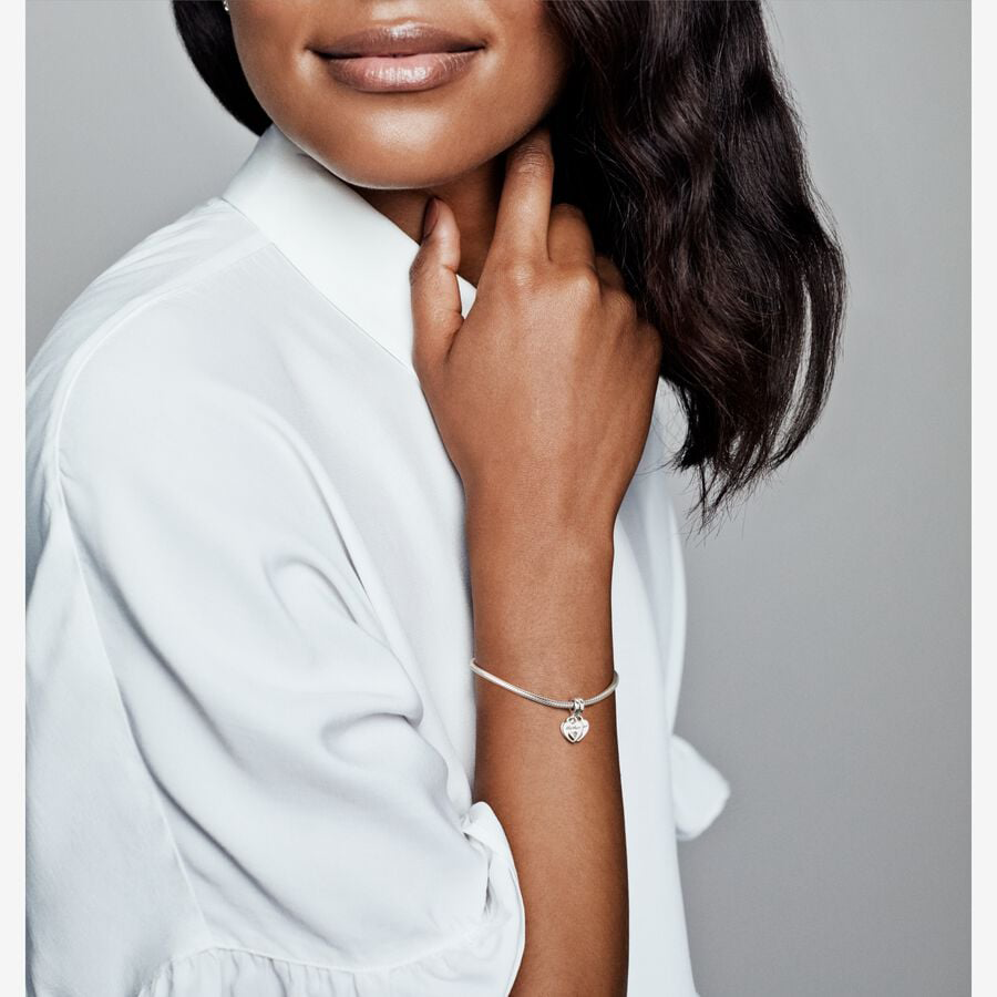 Honor a cherished connection with the Daughter & Mother Heart Splittable Charm. Crafted in sterling silver, one disc features a heart-shaped cut-out with the inscriptions "In my heart" and "Mother," while the other showcases a hand-painted pink enamel heart adorned with the engravings "Daughter" and "Forever." As the discs intertwine, the enamel heart seamlessly fits into the cut-out, symbolizing the inseparable bond. Share this charm with your beloved as a token of your enduring affection.