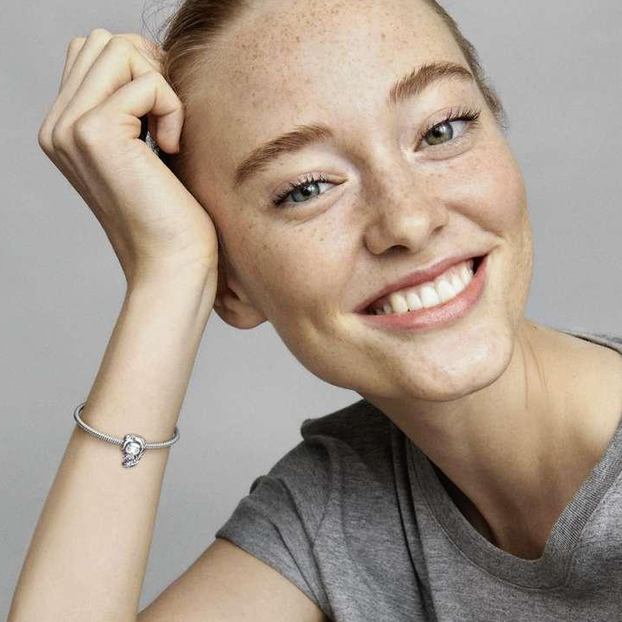 Embrace your inner princess with the Disney Tangled Rapunzel Charm. Crafted from sterling silver, this charm features intricate engraved facial details and vibrant lilac and glittery lavender enamel, highlighting Rapunzel's dress and flower crown. Designed to reflect Rapunzel's clever spirit and iconic flowing locks, this charm is a perfect reminder of your favorite Disney moments, adding a fun and colorful flair to your collection and everyday style.