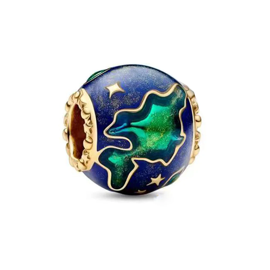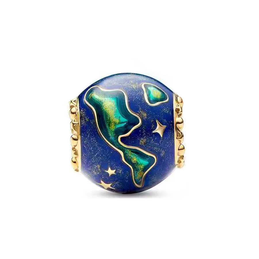 Crafted from gleaming gold, this celestial charm embodies elegance and allure. Designed with intricate details, it evokes the splendor of distant planets, captivating with its ethereal beauty. A symbol of luxury and sophistication, it adorns bracelets with a celestial touch, promising to enchant all who behold it.