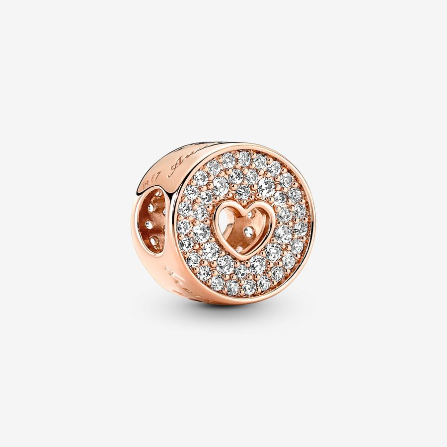 Say "I still do" with this Pavé & Heart Anniversary Charm. Hand-finished with 14k rose gold plating, it features a pavé of brilliant-cut clear cubic zirconia stones surrounding a cut-out heart. The top and bottom of the charm are engraved with the words: “Happy Anniversary.” A beautiful way to celebrate your journey together through all of life’s moments.