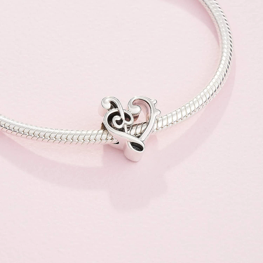 The Heart Treble Clef Charm embodies elegance and passion in its design. Crafted with sterling silver, it features a delicate heart intertwined with a graceful treble clef, symbolizing the harmony of love and music. This charm is a timeless addition to any collection, capturing the essence of melody and emotion.