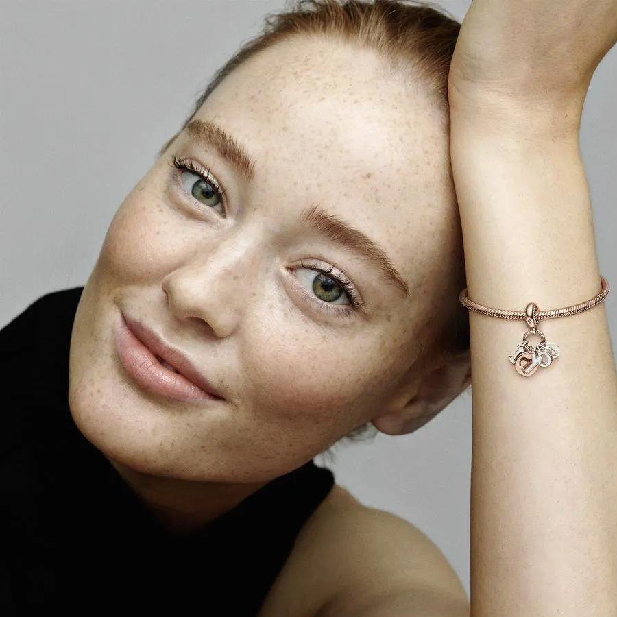 Begin your fashion romance with this two-tone I Love You Letters Dangle Charm, meticulously crafted in sterling silver and 14k rose gold-plated metal. The dangling letters spell out the cherished phrase "I love you," while a solitary red cubic zirconia nestled on the bail mirrors the affection. Adorn your beloved bracelet or gift it to someone dear, expressing your heartfelt sentiments.