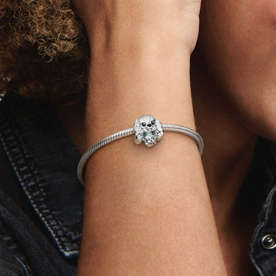 Demonstrate your allegiance to timeless tales with the Lady Charm inspired by beloved characters. This sterling silver piece boasts meticulous hand-finishing. Lady's distinctive features include an enlarged head, petite body, and delicately textured ears for an endearing touch. Accentuated with hand-applied enamel detailing on her eyes, nose, and collar, this charm exudes a unique charm. Pair it effortlessly with other styles inspired by beloved characters for a meaningful ensemble.