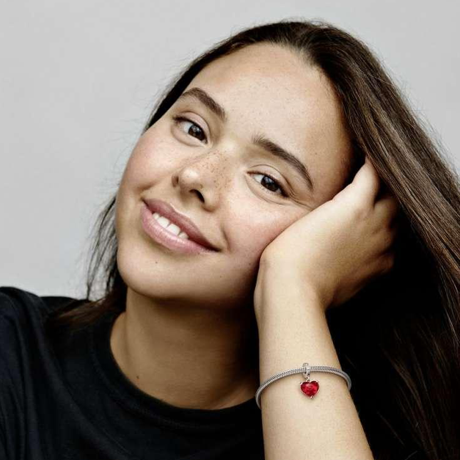 Celebrate timeless love with our Disney Mickey & Minnie Mouse Kiss Red Murano Glass Dangle Charm. Crafted from sterling silver, this enchanting charm features Disney’s most beloved couple sharing a sweet kiss, their hands forming a heart. The heart-shaped red Murano glass reveals a romantic silhouette, while the engraving “A forever kind of love” adds a heartfelt touch. A perfect gift for the Disney fan who cherishes love and magic.