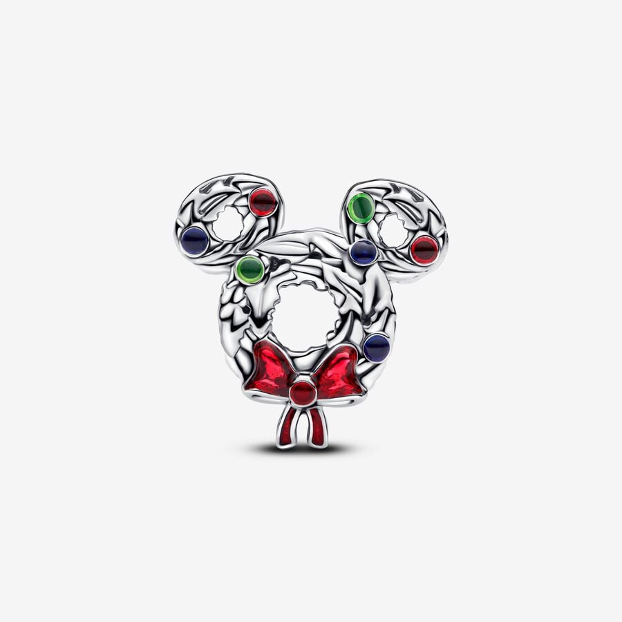 Celebrate the season with our Mickey Mouse Christmas Wreath Charm. Made from sterling silver, this charm features Mickey Mouse's signature silhouette forming a charming wreath, adorned with colorful enamel ornaments and a cheerful bow. A delightful gift for any Disney enthusiast or a festive touch for your own collection.