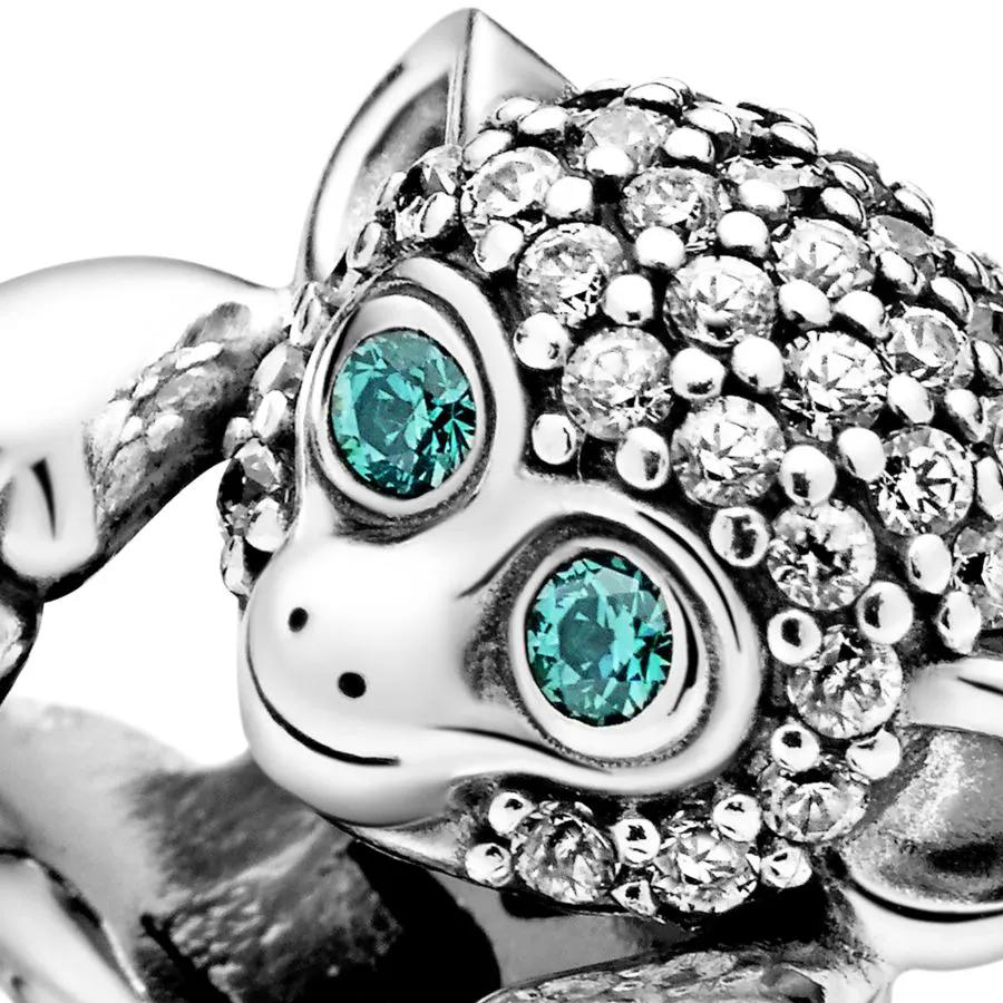 The charming cheeky monkey charm boasts intricate detailing, featuring vivid blue stone eyes and a head adorned with stones. Its dangling chain tail and heart-embellished feet add to its adorable allure. This charm easily attaches to your bracelet or necklace, showcasing the surface of your chosen carrier through its belly. Pair it with other animal charms to craft a personalized menagerie of style.