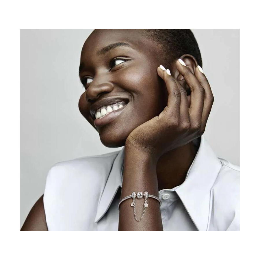 Our Moon & Star Safety Chain are crafted to ensure charms stay securely on your bracelet. This sterling silver creation, meticulously hand-finished, brings a celestial allure to your ensemble. Adorned with moon and star embellishments and accented with cubic zirconia, it exudes elegance. Equipped with swivel ends to avoid entanglement, effortlessly slide one end onto your bracelet prior to attaching charms, then connect the free end of the safety chain after arranging your charms.