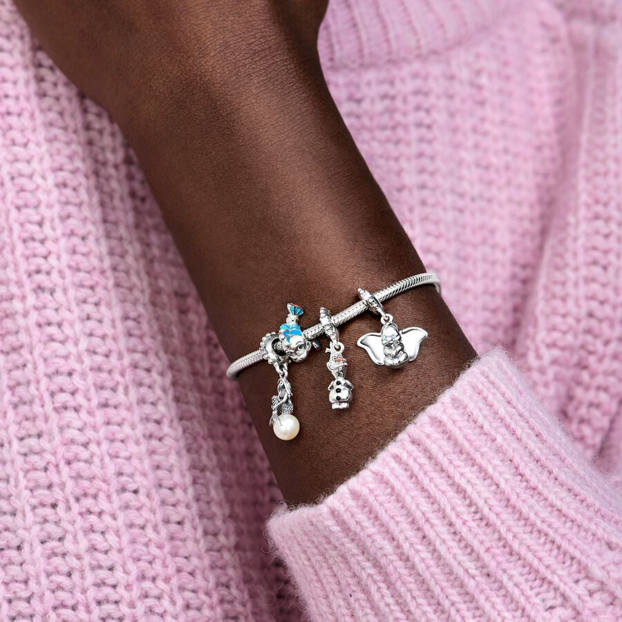 Adored for his warmth and infectious cheer, Olaf stands out as the beloved snowman from the animated tales of Frozen and Frozen 2. Embrace the lively spirit of this endearing character with a sterling silver charm from the Moments collection. This charm captures Olaf's charm with clear cubic zirconia detailing, a movable body and head that sway gently when adorned, and meticulously applied enamel accents in black and orange. Let your collection radiate with joy and whimsy as you celebrate the enchanting essence of Olaf with every wear.