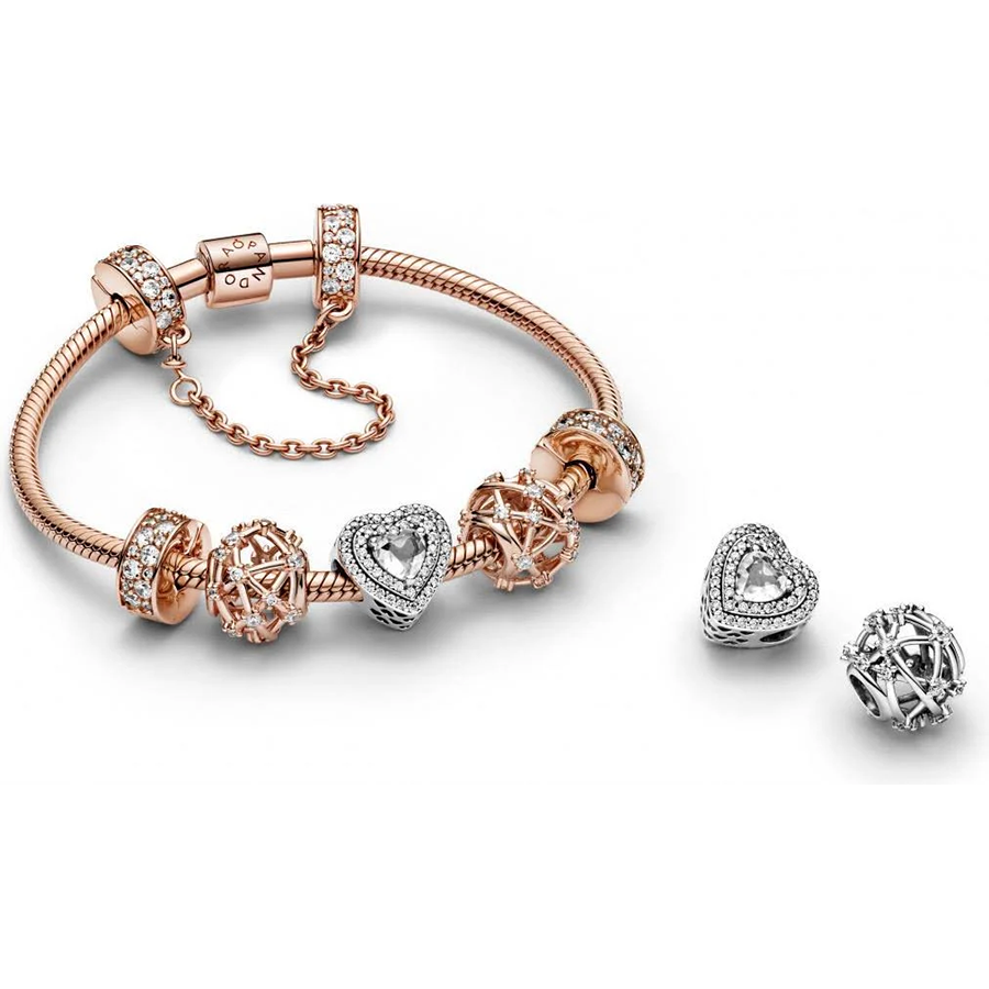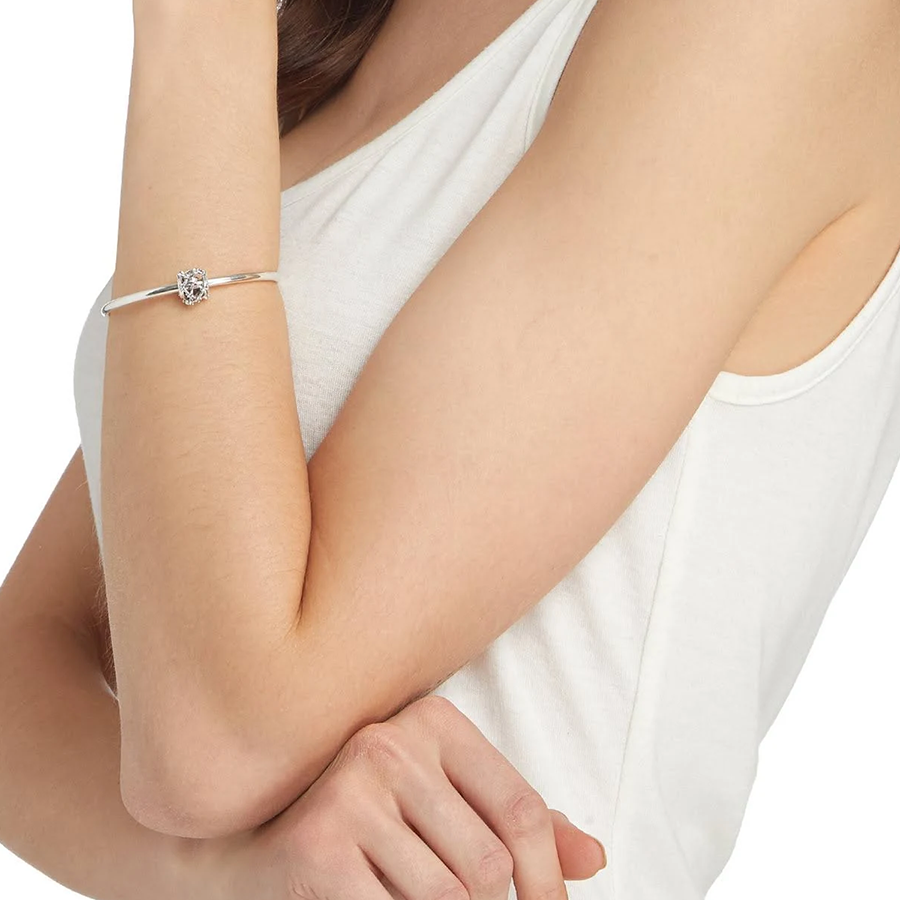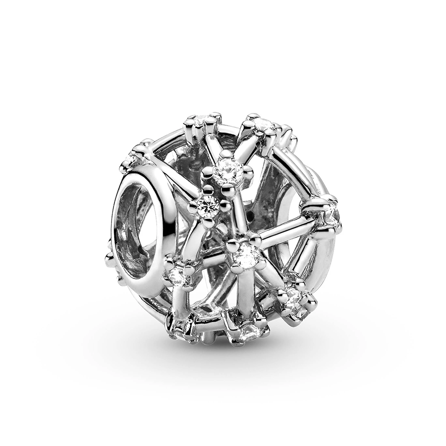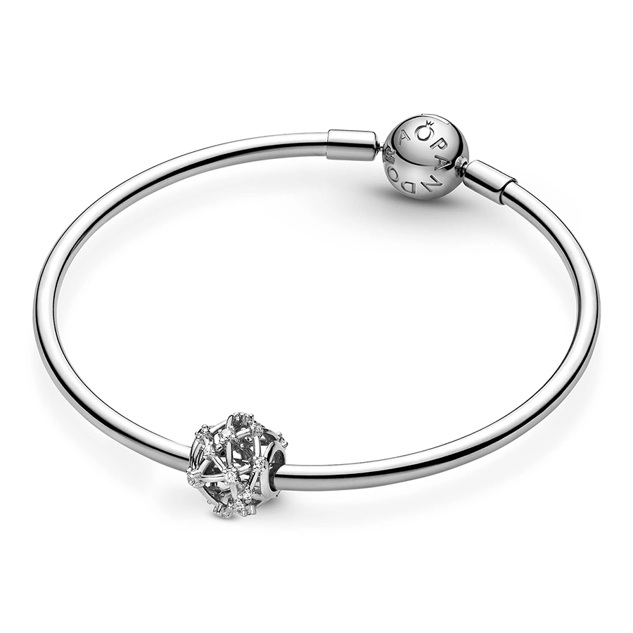 Seek guidance from the celestial realm with the Openwork Star Charm. Meticulously crafted in sterling silver, this charm draws inspiration from a galaxy-themed motif. Clear stones embellish the charm's intricate openwork pattern, evoking the dazzling arrangement of stars in the cosmos. Pair it with other zodiac-inspired charms on your bracelet to express your fascination with the cosmos.