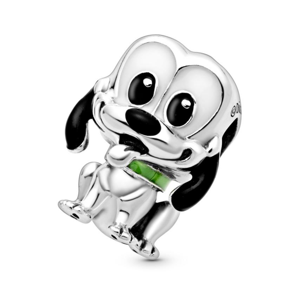 Obtain your faithful companion with this hand-finished Pluto charm from the Favourites series. This charm captures the essence of the beloved dog with its enlarged head and smaller body, showcasing his joyful expression. Made of sterling silver, the charm is adorned with hand-applied green and black enamel details. Pair it with your preferred Disney-inspired charms to embark on a style journey of your own.