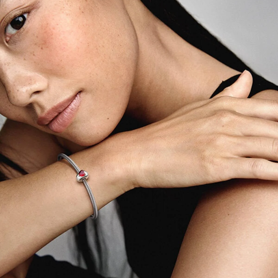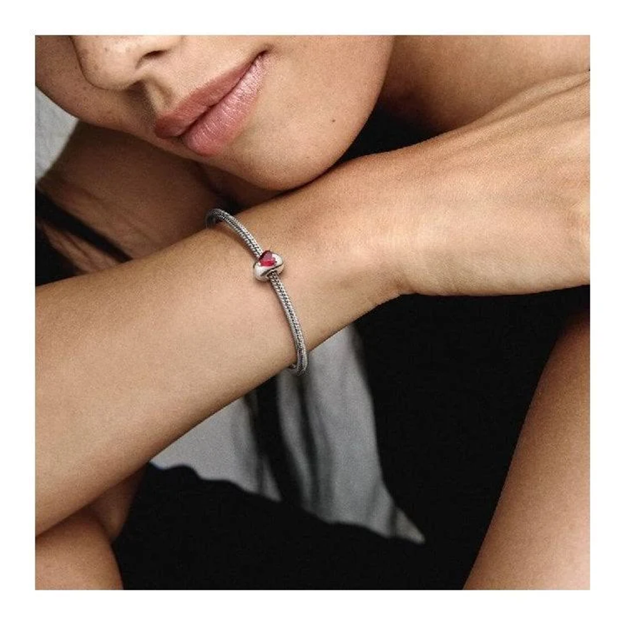Enhance the charm of your bracelet with this captivating clip adorned with a Red Heart. Crafted from high-quality 925 sterling silver, this exquisite jewel showcases a vivid red heart-shaped crystal, delicately nestled in the center with a prong system. It offers a fresh interpretation of the timeless solitaire ring, introducing a radiant new addition to your bracelet's ensemble.