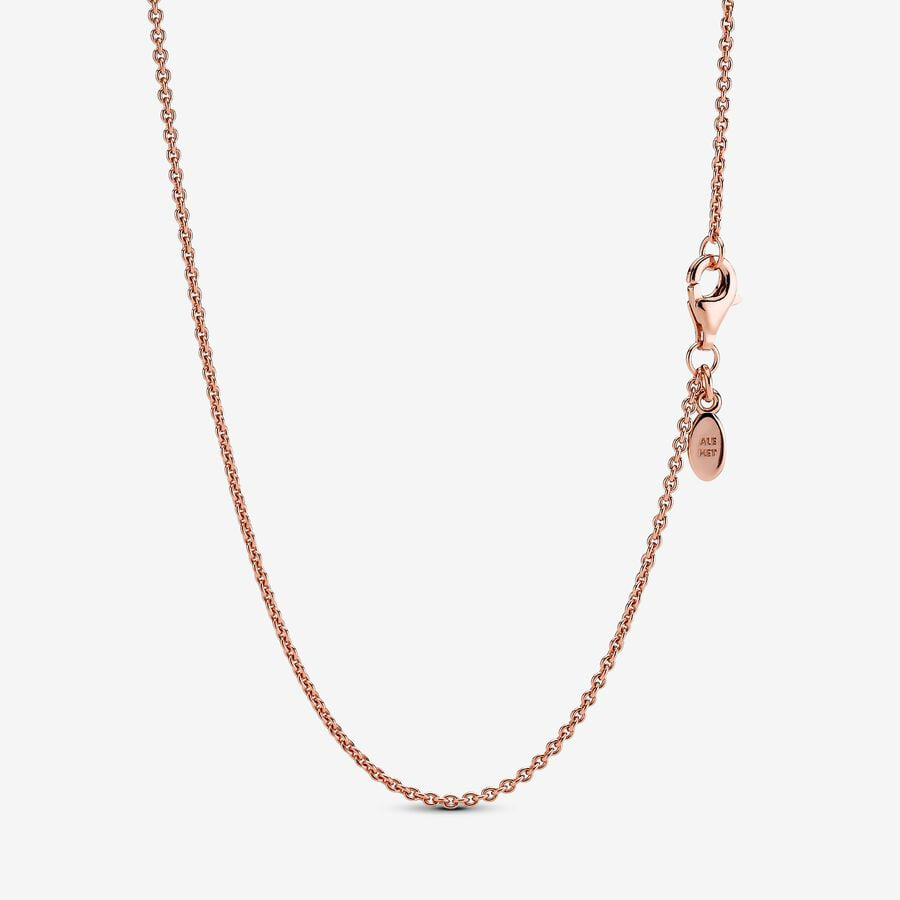 Explore the ideal method to showcase your cherished pendants and charms with this Classic Cable Chain Necklace. The lobster clasp and jump ring are crafted from sterling silver plated with 14k rose gold. Completely adaptable, it offers three length options, enhancing various necklines. Adorn it with your preferred pendants or layer it with other chains for a fashionable, versatile style.