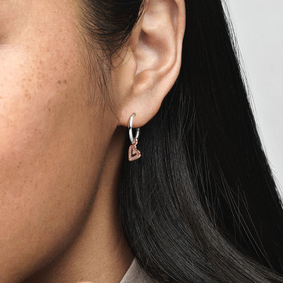 Inject some affection into your earring ensemble with our Rose Gold Heart Hoop Earrings. Every hoop carries a freehand heart adorned with clear cubic zirconia, representing flawlessly imperfect love. With sterling silver hoops and hearts plated in 14k rose gold, these distinctive earrings captivate the eye and warm the heart in equal measure.
