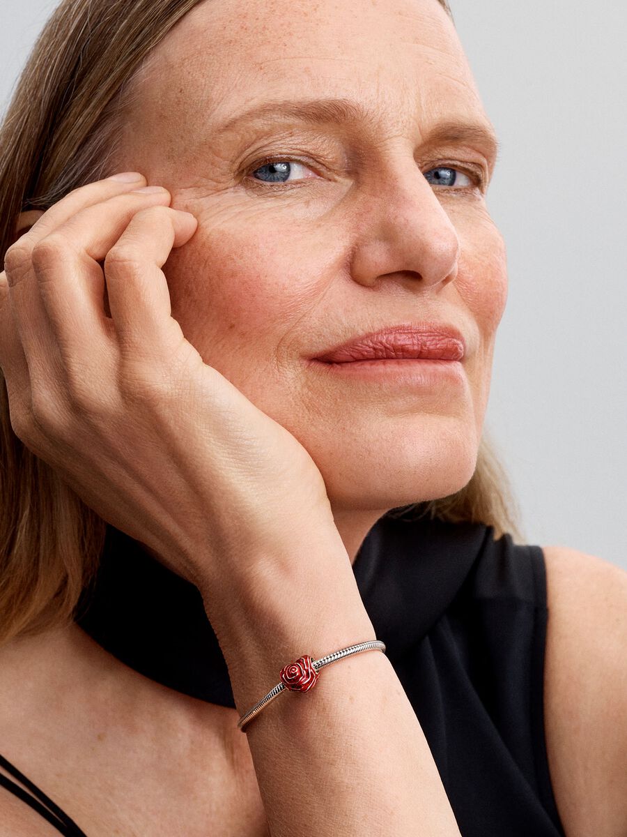 Made from sterling silver, this charm showcases rich red enamel in a layered petal design. Wear it as a reminder of self-love or gift it to someone who fills your life with love every day.