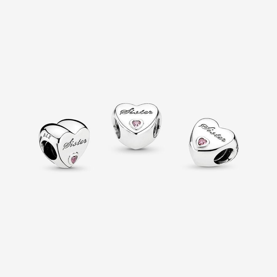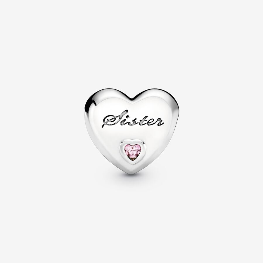 Crafted to honor the cherished connection between siblings, our sterling silver Sister Pink Heart Charm takes the form of a heart. Gleaming with a radiant finish, its understated yet profound design features heart-shaped pink gems and the inscription "Sister." We believe it serves as a heartfelt token to commemorate the narrative you both cherish.