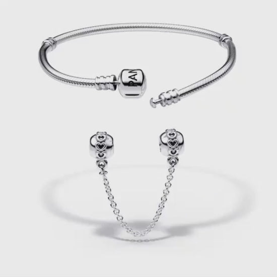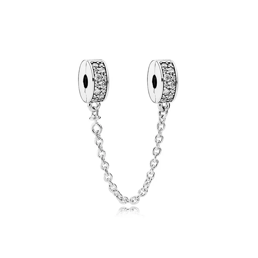 Secure your charms with our Sparkling Silver Safety Chain, crafted specifically for Moments bracelets. Made with sterling silver and meticulously hand-finished, the accessory showcases clips adorned with shimmering clear cubic zirconia.