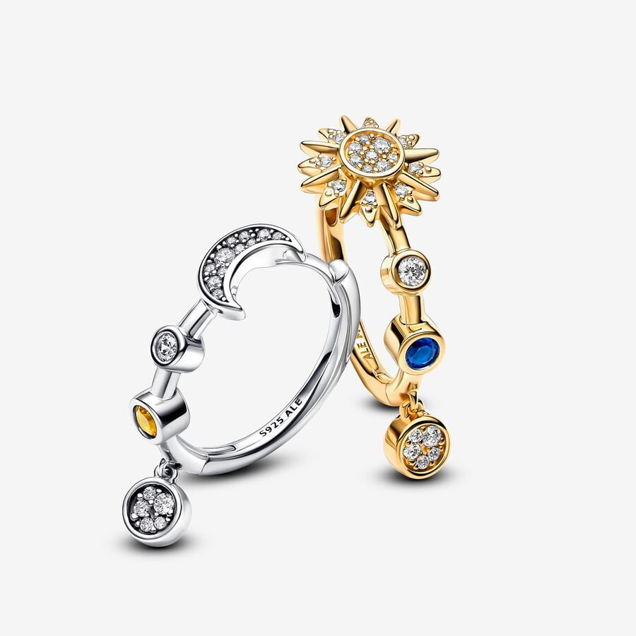 Embrace celestial elegance with the Sun & Moon Sparkling Hoop Earrings. One hoop, plated in 14k gold, showcases the sun, while the other, crafted from sterling silver, bears a crescent moon, each adorned with pavé centers. Polished hoops accented by two bezel-set stones and dangling round pavé details capture the allure of the heavens. Drawing inspiration from the enigmatic cosmos, these sun and moon earrings reflect the innate beauty of the universe, infusing a touch of celestial charm into your fashion statement.