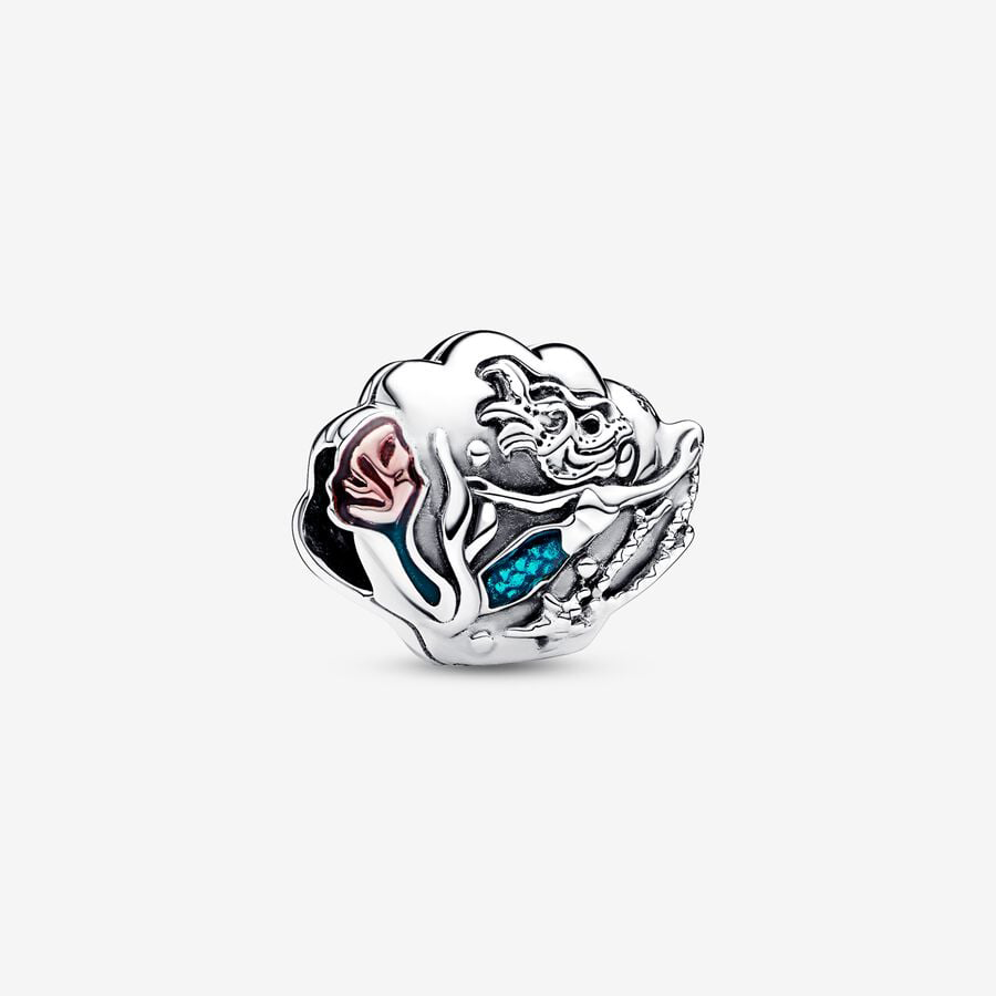 Explore enchanted wonders with The Little Mermaid Seashell Charm. This sterling silver creation captures a mesmerizing underwater tableau, featuring vibrant fish and a graceful Ariel, adorned with meticulous enamel accents. Sterling silver beads emulate ocean bubbles, enhancing the charm of the coral reef embellished with delicate pink stones. Engraved with "Under the sea," it serves as a poignant reminder of the allure and enchantment beneath the waves. Kindly note, this shell charm is non-opening. Simply slide it onto your preferred charm holder and embark on a journey of whimsy and elegance.