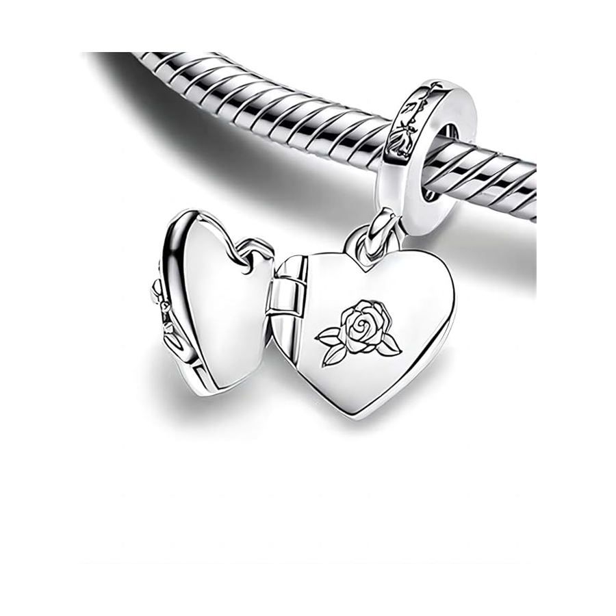 Crafted from sterling silver with intricate detailing and vibrant enamel accents, this enchanting piece opens to reveal a hidden surprise—an engraved rose. The back features "Disney Parks" alongside delicate star engravings, while the bail is adorned with a long-stem rose, making it a timeless symbol of true love.