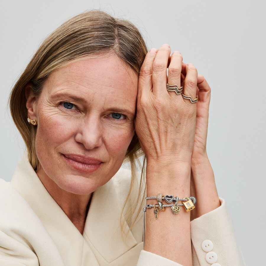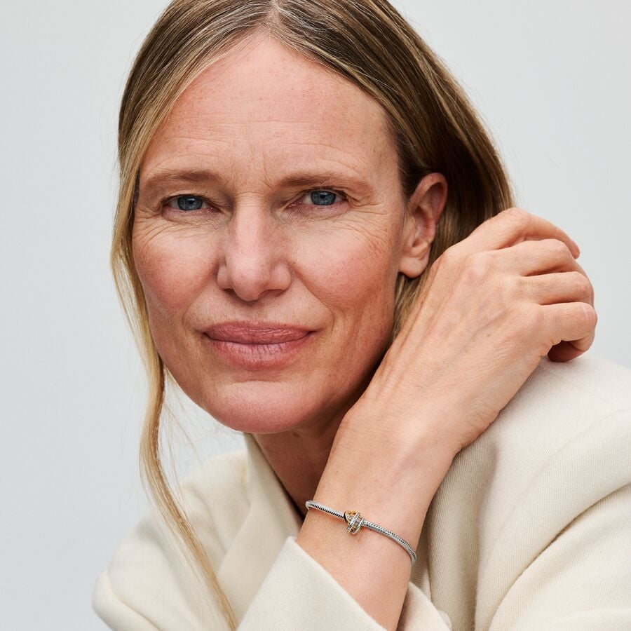 Hold your loved ones close with our Two-Tone Stepmum Entwined Hearts Charm, beautifully crafted from sterling silver and accented with a 14k gold-plated heart. The entwined hearts design represents the cherished bonds of family, featuring graceful, interwoven lines that form a heart shape. An engraved message reads, "Stepmum Love makes us family," with a unique imprinted heart replacing the "u." A sterling silver circle, set at an elegant angle, adds a touch of sophistication. Thoughtfully designed to honor diverse mother figures, this charm is a touching tribute to family love.