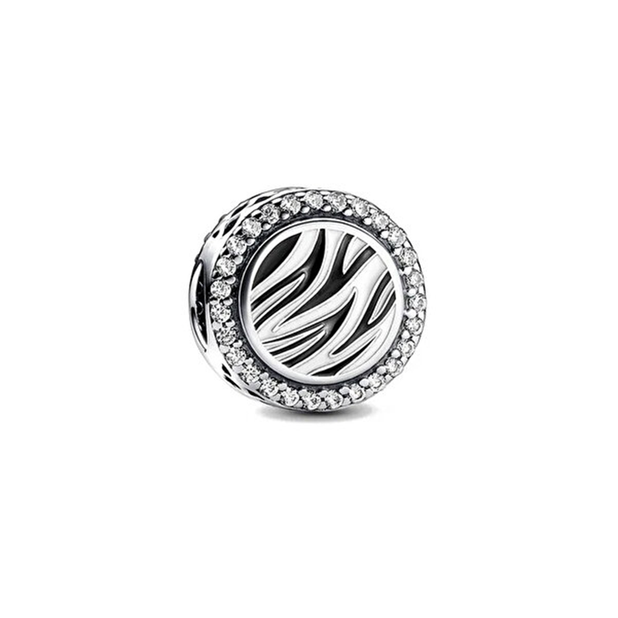 This captivating charm boasts a striking white and black pattern, reminiscent of timeless elegance and modern sophistication. Crafted in a circular design, it exudes versatility, ideal for adding a touch of chic style to any bracelet or necklace. A statement piece that speaks volumes with its understated beauty.