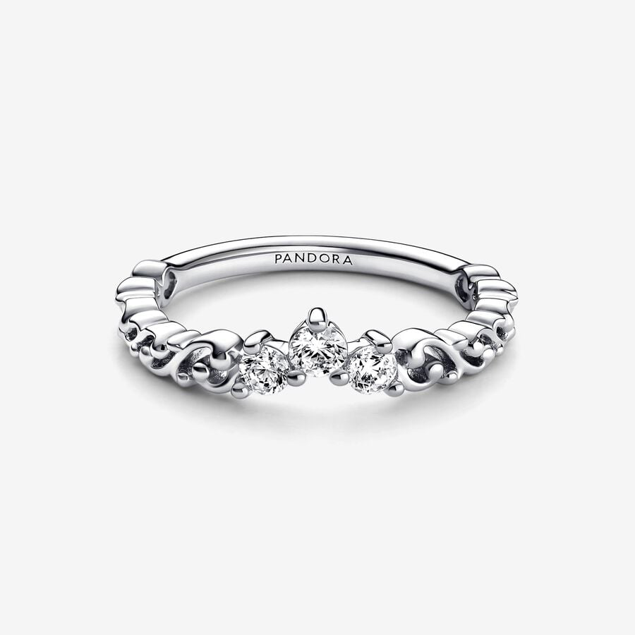 Elevate your style to royalty with the Crown Tiara Ring. Made from sterling silver, this aristocratic accessory showcases a tiara adorned with three dazzling stones and intricate swirling filigree. Embrace the essence of regality as you adorn your hand with this majestic ring, embodying the grace of a true queen.