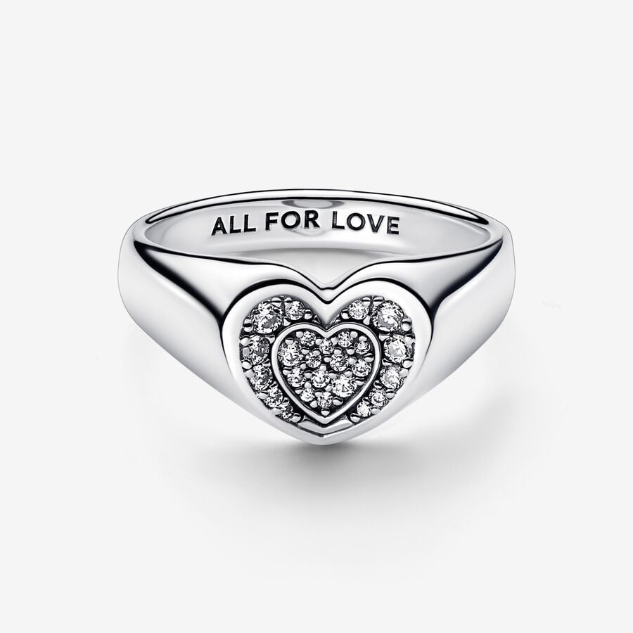 Embrace the vibrant essence of affection with our White Heart Pavé Ring. This exquisite piece showcases a concave, multidimensional heart motif adorned with dazzling pavé, meticulously crafted in sterling silver. Engraved inside the band is the poignant phrase "ALL FOR LOVE," serving as a heartfelt testament to the unity of two souls.