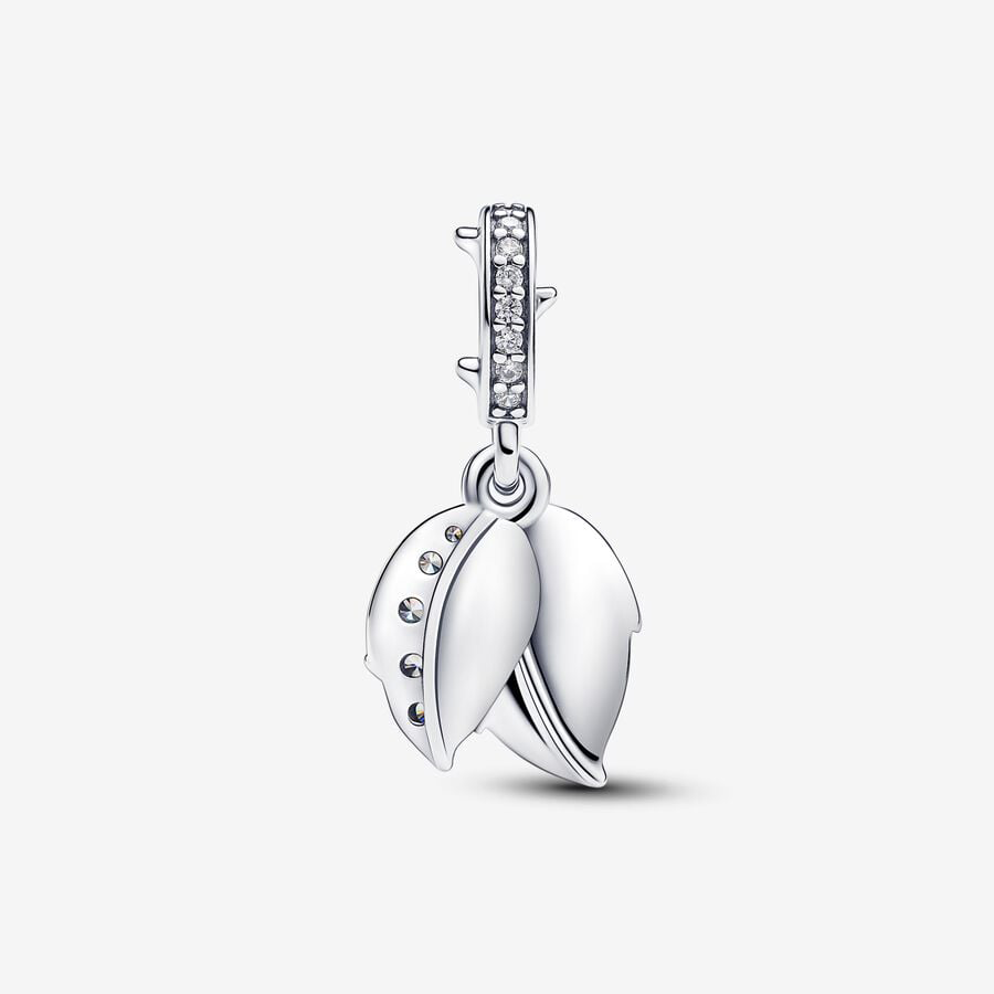 Embrace elegance with the White Rose in Bloom Double Dangle Charm, a sterling silver piece filled with love and symbolism. The intricately designed charm features a white bioresin man-made mother of pearl rose, its layered petals capturing the essence of a blooming flower. Adorned with clear cubic zirconia, this charm serves as a sparkling tribute to love. The engraved message "NOTHING COMPARES TO YOU" adds a personal touch. Thoughtful details, from the thorn-adorned bail to the leaf-shaped discs, make this charm an enduring symbol of pure love.