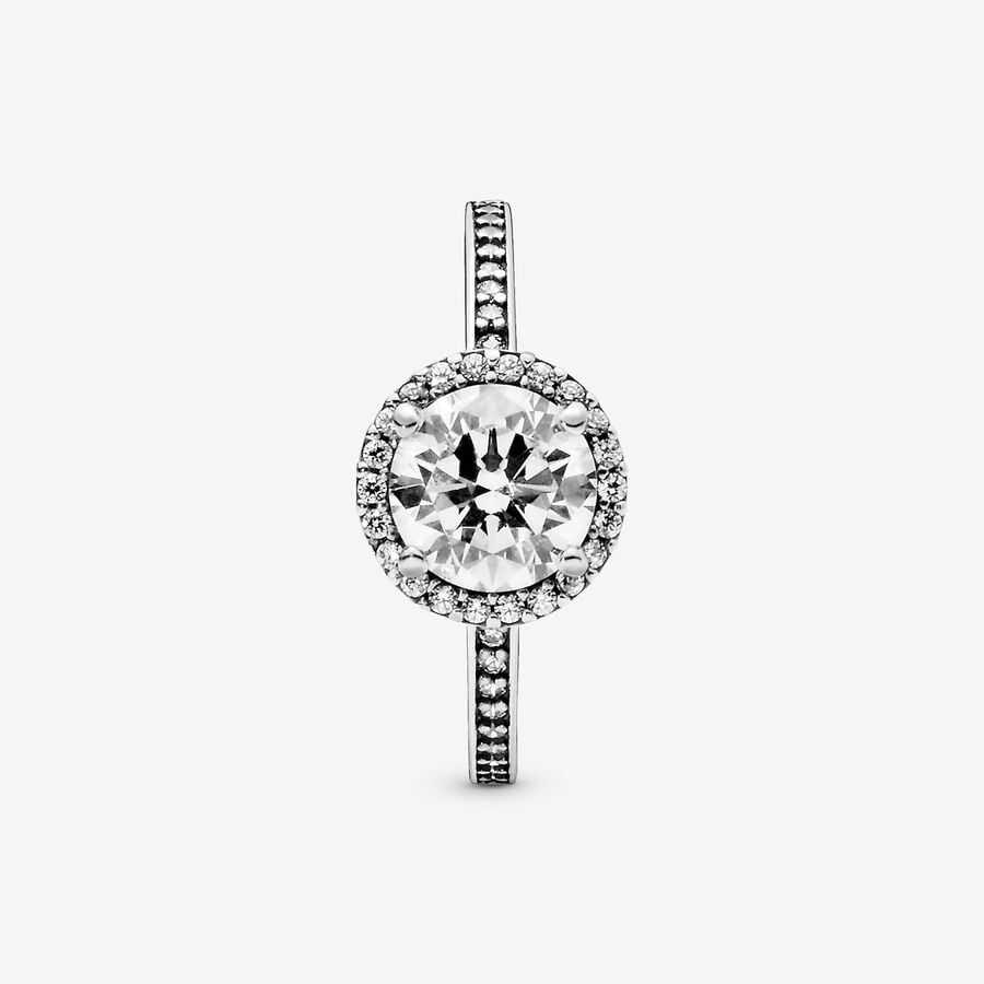 Radiate timeless elegance with this White Round Sparkle Ring. Meticulously fashioned in sterling silver, this vintage-inspired piece showcases a large brilliant-cut cubic zirconia stone encircled by delicate shimmering stones. Elevate any ensemble with this sparkling ring, imbuing sophistication into both casual attire and extravagant evening wear.